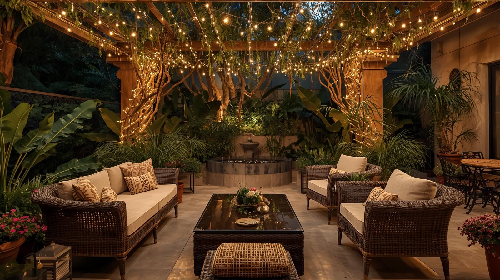 Outdoor beauty greatly depends on light. Light up the evening with the help of the string, lanterns, or solar lamps that help to make the atmosphere cozy. Ornamentation such as planters, sculptures or art on the wall can be used to convey personality but with a highbrow feel. Keep things simple–elegance is frequently characterized by simplicity.